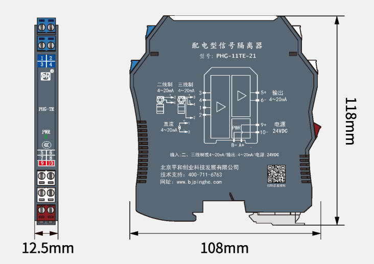 該產(chǎn)品需獨立供電, 電源、輸入、輸出三端隔離。