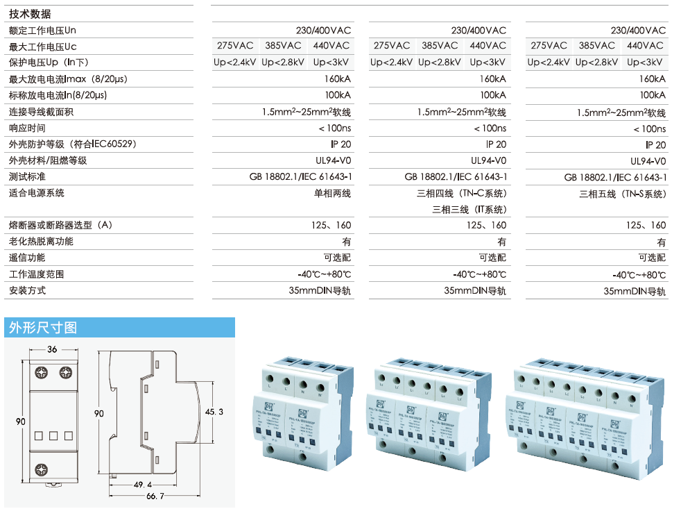 | 雷電沖擊電流limp(10/350μS) | 20KA |