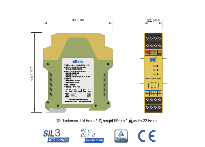 PH6402-3A1B(M)是一款安全繼電器控制模塊,適用于安全地毯輸入,具有3路常開(NO)安全輸出觸點(diǎn)和1路常閉(NC)輔助輸出觸點(diǎn)的安全繼電器。它支持雙通道操作,手動(dòng)復(fù)位,并具有復(fù)位按鈕監(jiān)控功能。