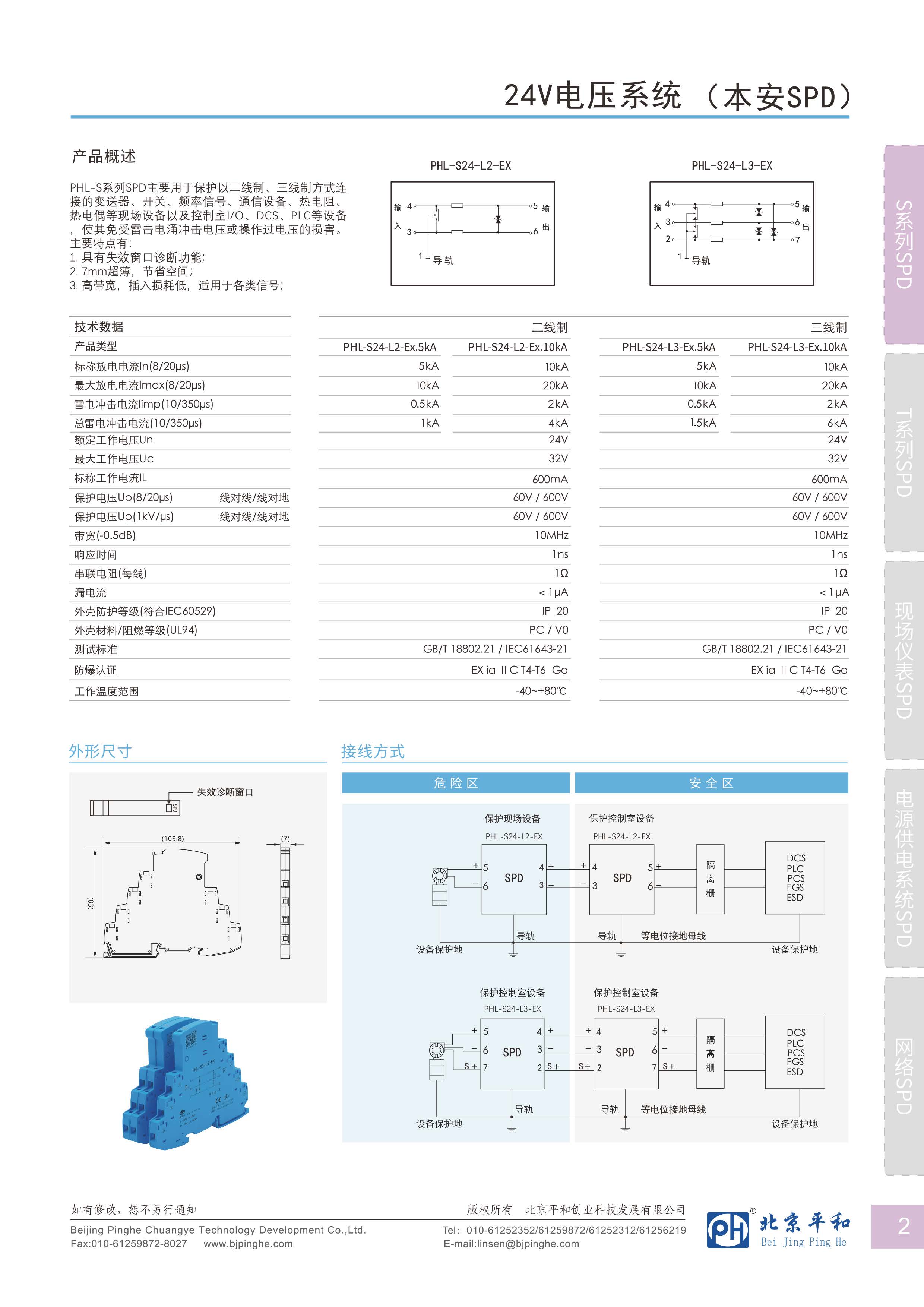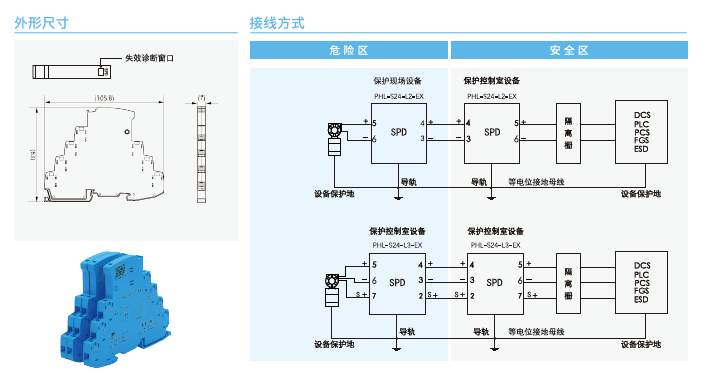PHL-S系列SPD主要用于保護(hù)以二線制、三線制方式連接的變送器、開關(guān)、頻率信號(hào)、通信設(shè)備、熱電阻、熱電偶等現(xiàn)場(chǎng)設(shè)備以及控制室I/O、DCS、PLC等設(shè)備,使其免受雷擊電涌沖擊電壓或操作過電壓的損害。主要特點(diǎn)有: