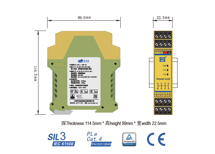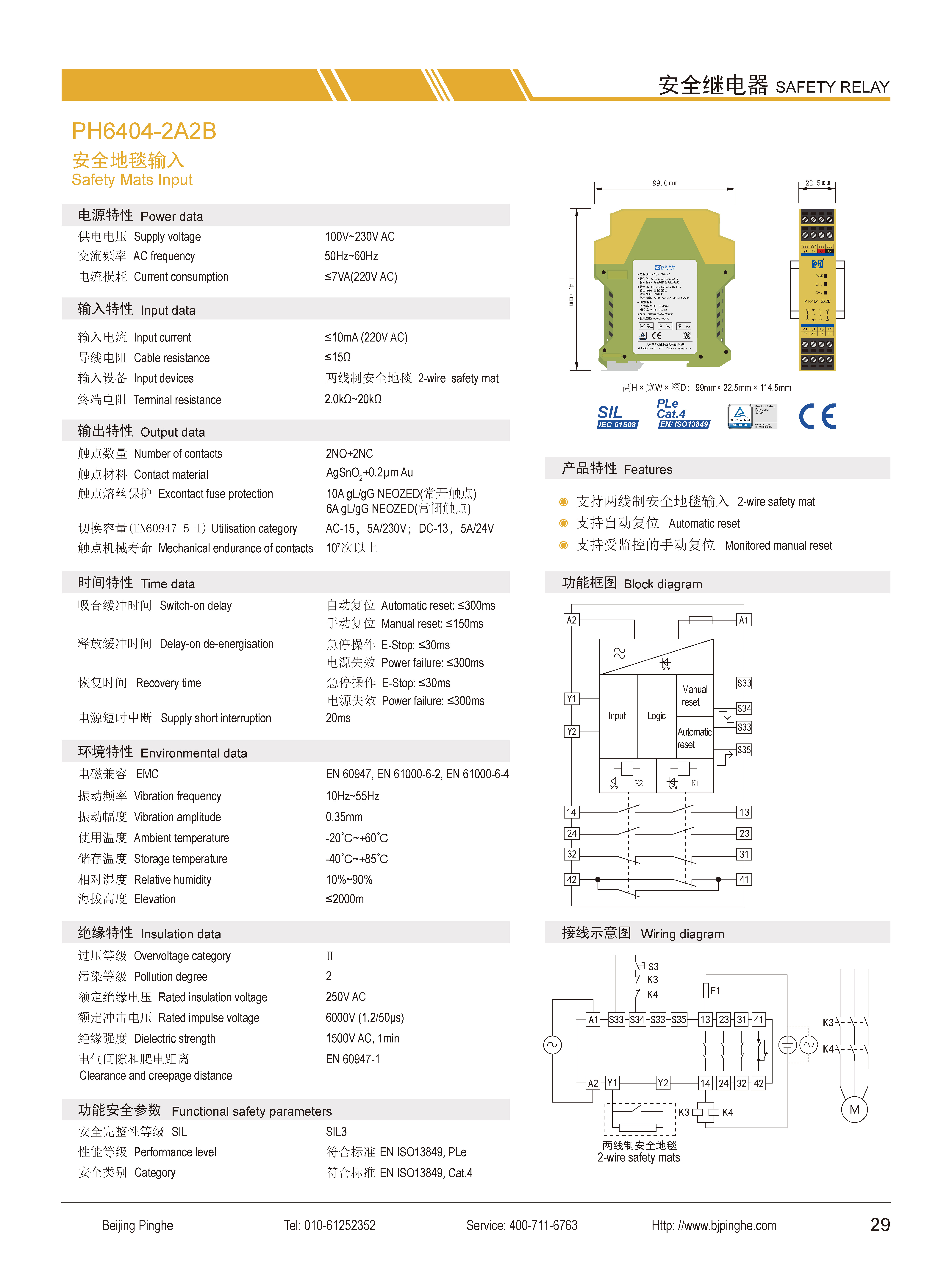 PH6403-2A2B是一款安全繼電器控制模塊,適用于兩線制安全地毯輸入,具有2路常開(NO)安全輸出觸點(diǎn)和2路常閉(NC)輔助輸出觸點(diǎn)的安全繼電器。它支持手動或自動復(fù)位,并具有復(fù)位按鈕監(jiān)控功能。