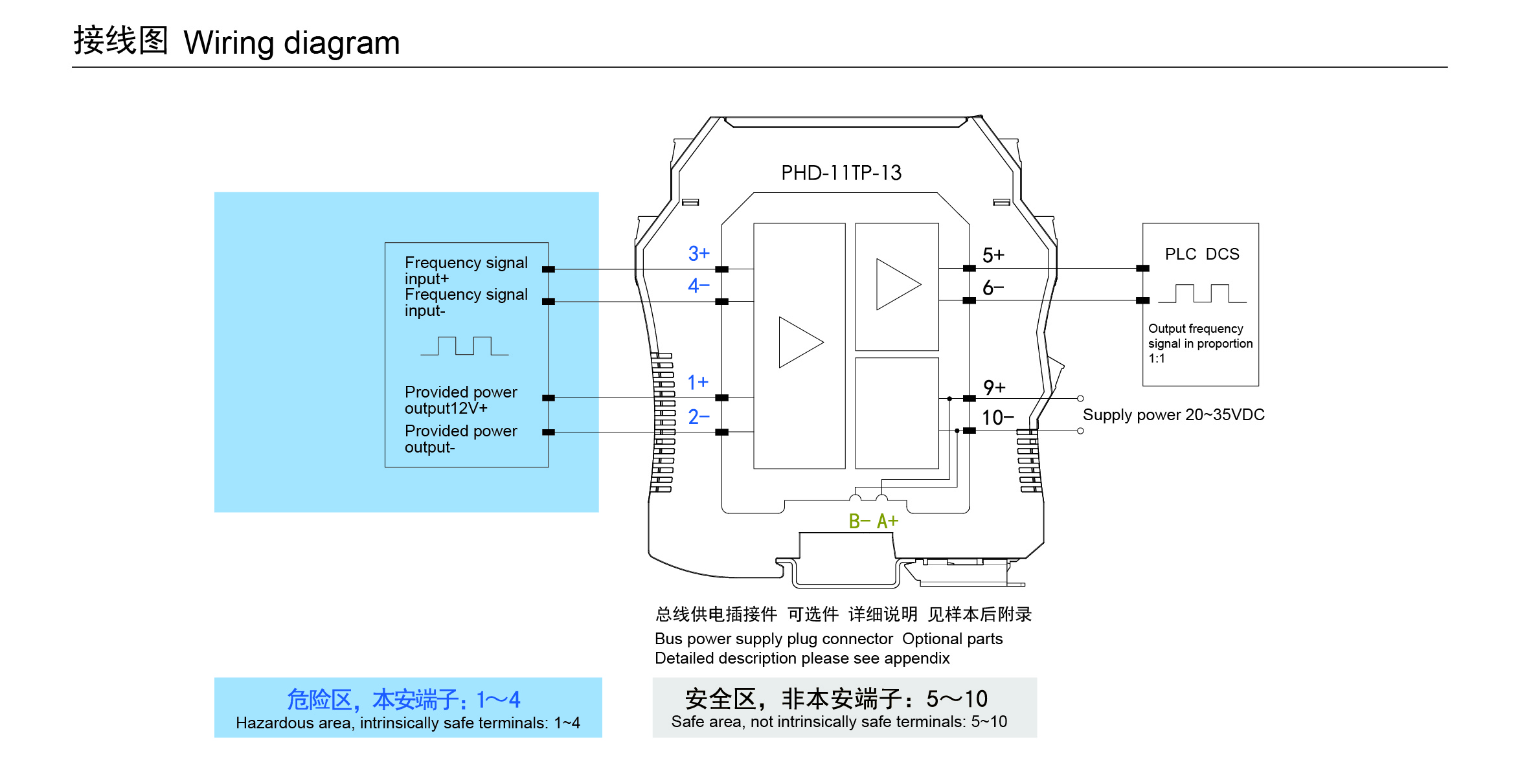 頻率信號輸入隔離式安全柵,可實(shí)現(xiàn)將危險(xiǎn)區(qū)儀表的頻率信號1:1傳輸?shù)桨踩珔^(qū),并給危險(xiǎn)區(qū)的現(xiàn)場儀表提供隔離配電電源(12V或24V)。