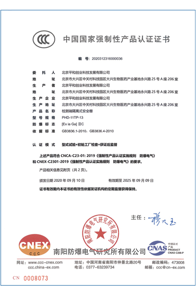 | 認(rèn)證機(jī)構(gòu) | 國家防爆電氣產(chǎn)品質(zhì)量監(jiān)督檢驗(yàn)中心CQST認(rèn)證 |