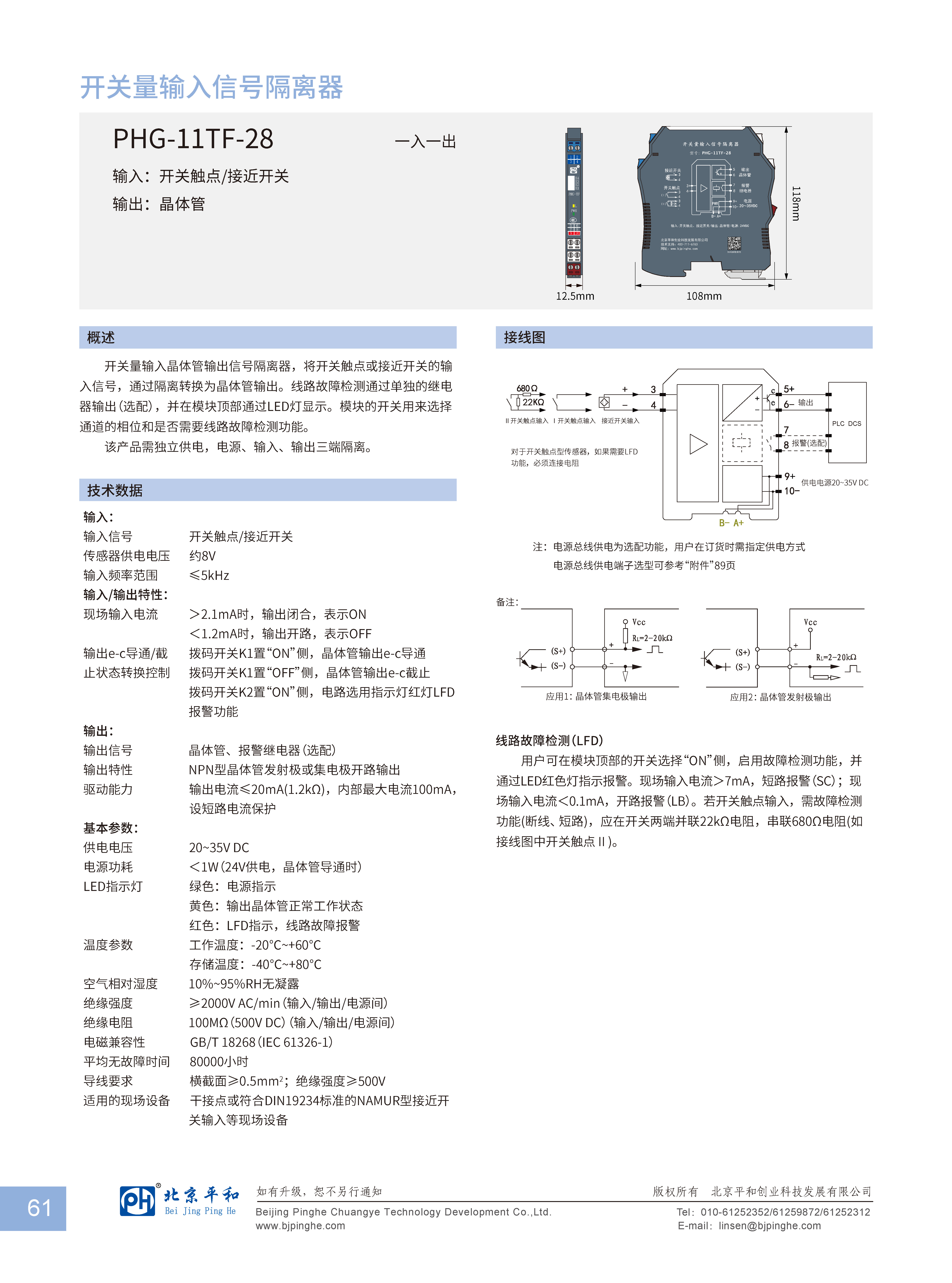 開關(guān)量輸入晶體管輸出信號(hào)隔離器,將開關(guān)觸點(diǎn)或接近開關(guān)的輸入信號(hào),通過隔離轉(zhuǎn)換為晶體管輸出。線路故障檢測(cè)通過單獨(dú)的繼電器輸出(選配),并在模塊頂部通過LED燈顯示。模塊的開關(guān)用來選擇通道的相位和是否需要線路故障檢測(cè)功能。