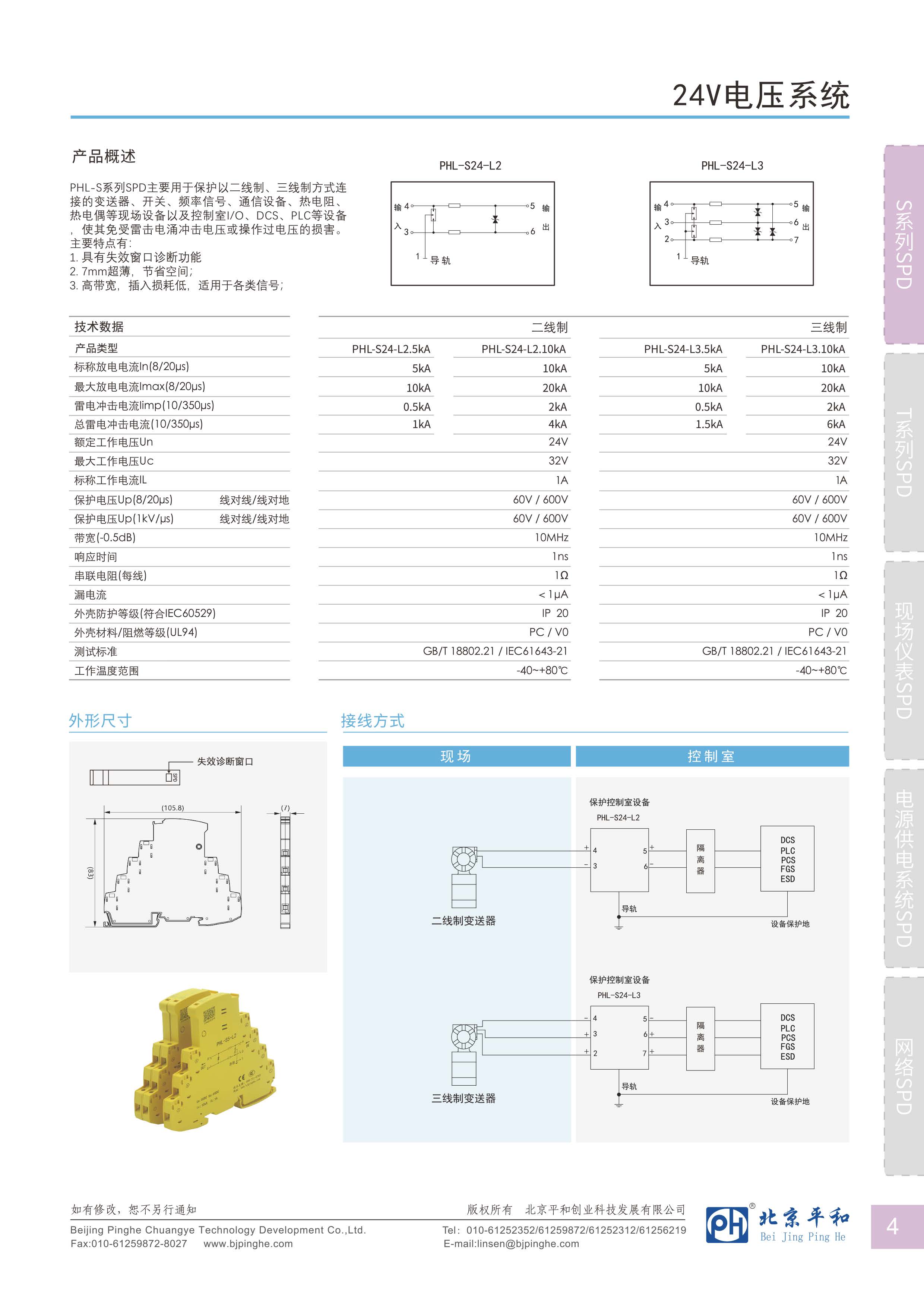 PHL-S24小功率電源SPD主要用于保護現(xiàn)場設備以及控制室24V供電設備,使其免受雷擊電涌沖擊電壓或操作過電壓的損害。