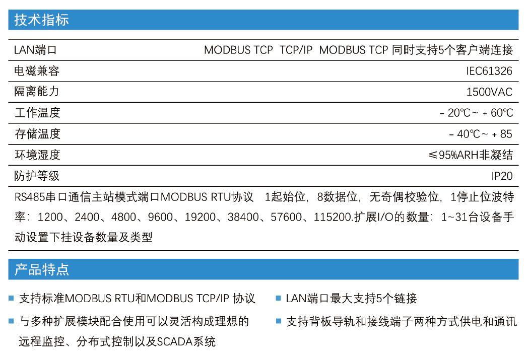 | LAN端口 | MODBUS TCP TCP/IP MODBUS TCP同時(shí)支持5個(gè)客戶端連接 |