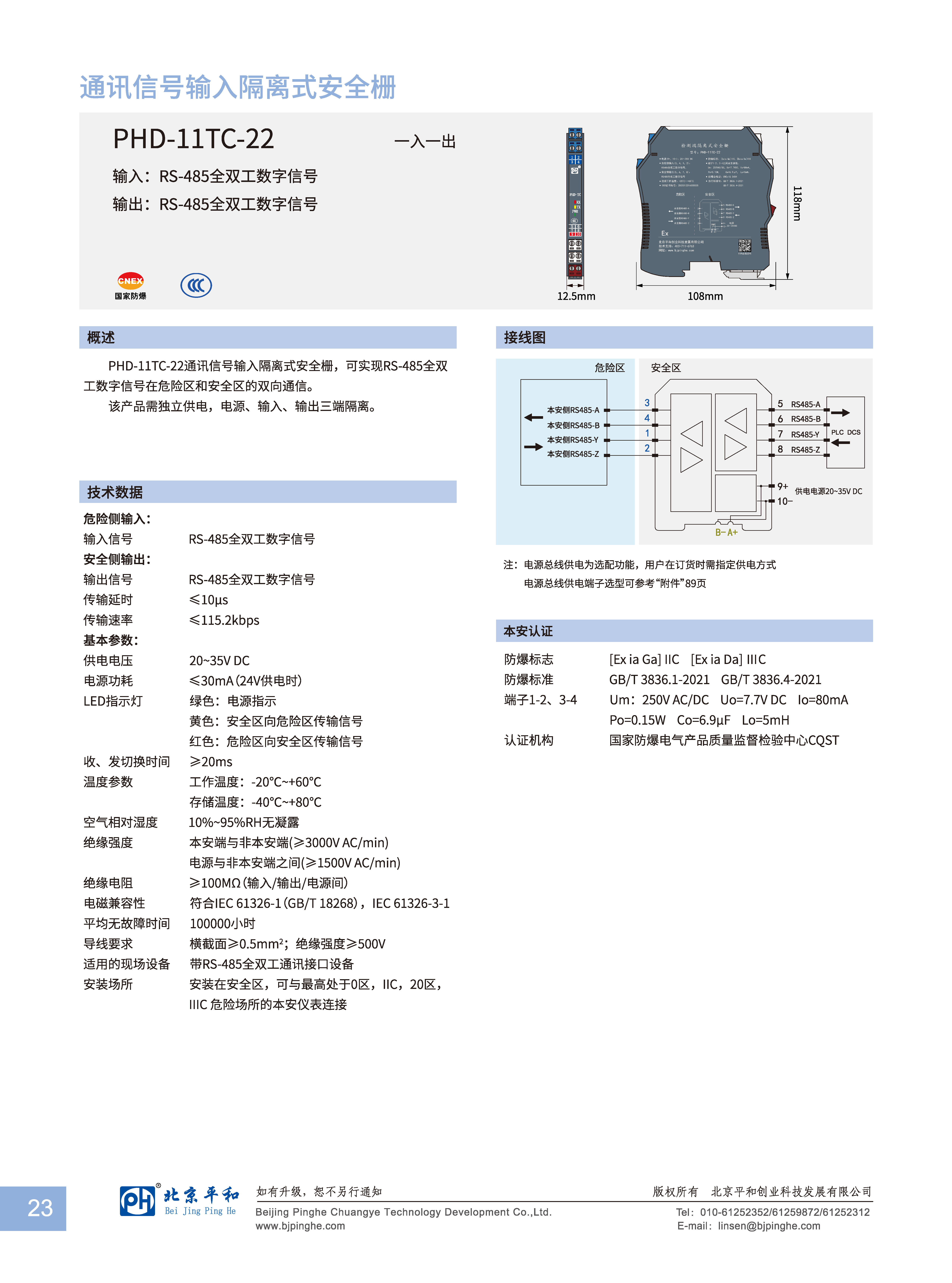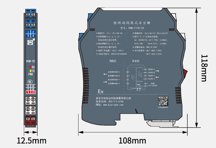 PHD-11TC-22通訊信號(hào)輸入隔離式安全柵,可實(shí)現(xiàn)RS-485全雙工數(shù)字信號(hào)在危險(xiǎn)區(qū)和安全區(qū)的雙向通信。