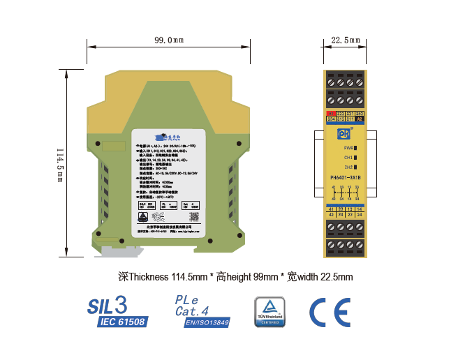 PH6401-3A1B是一款安全繼電器控制模塊,適用于安全地毯輸入,具有3路常開(NO)安全輸出觸點(diǎn)和1路常閉(NC)輔助輸出觸點(diǎn)的安全繼電器。它支持雙通道操作,手動或自動復(fù)位功能。