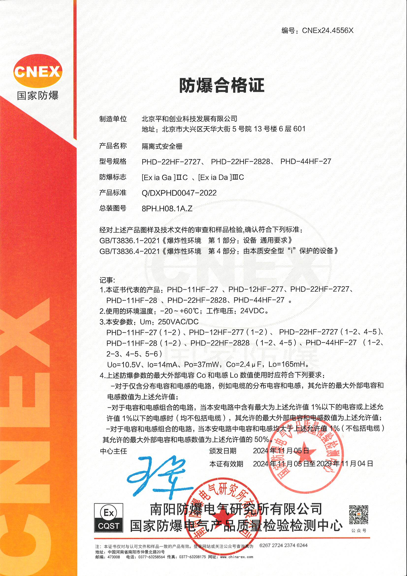| 認(rèn)證機構(gòu) | 國家防爆電氣產(chǎn)品質(zhì)量監(jiān)督檢驗中心CQST認(rèn)證 |