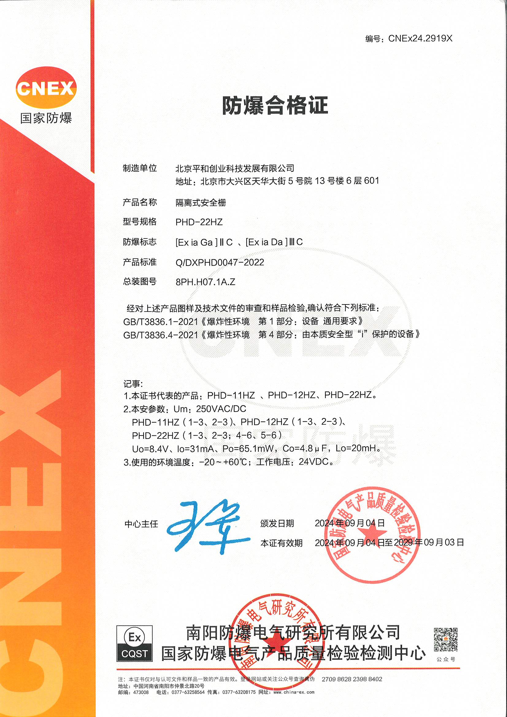 | 認證機構 | 國家防爆電氣產(chǎn)品質(zhì)量監(jiān)督檢驗中心CQST認證 |