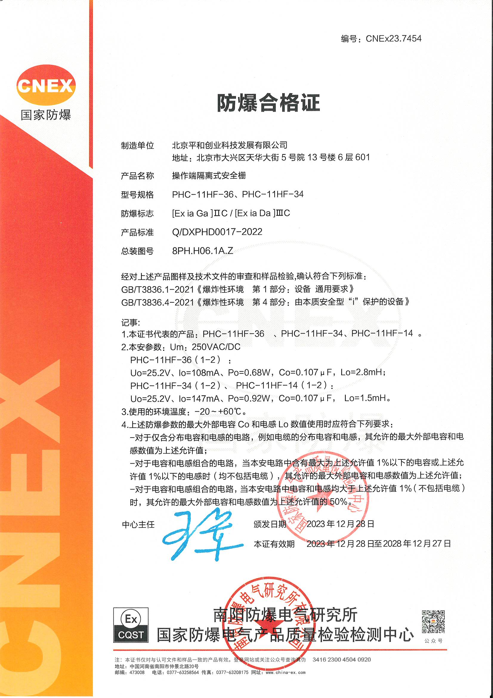 | 認(rèn)證機(jī)構(gòu) | 國家防爆電氣產(chǎn)品質(zhì)量監(jiān)督檢驗(yàn)中心CQST認(rèn)證 |