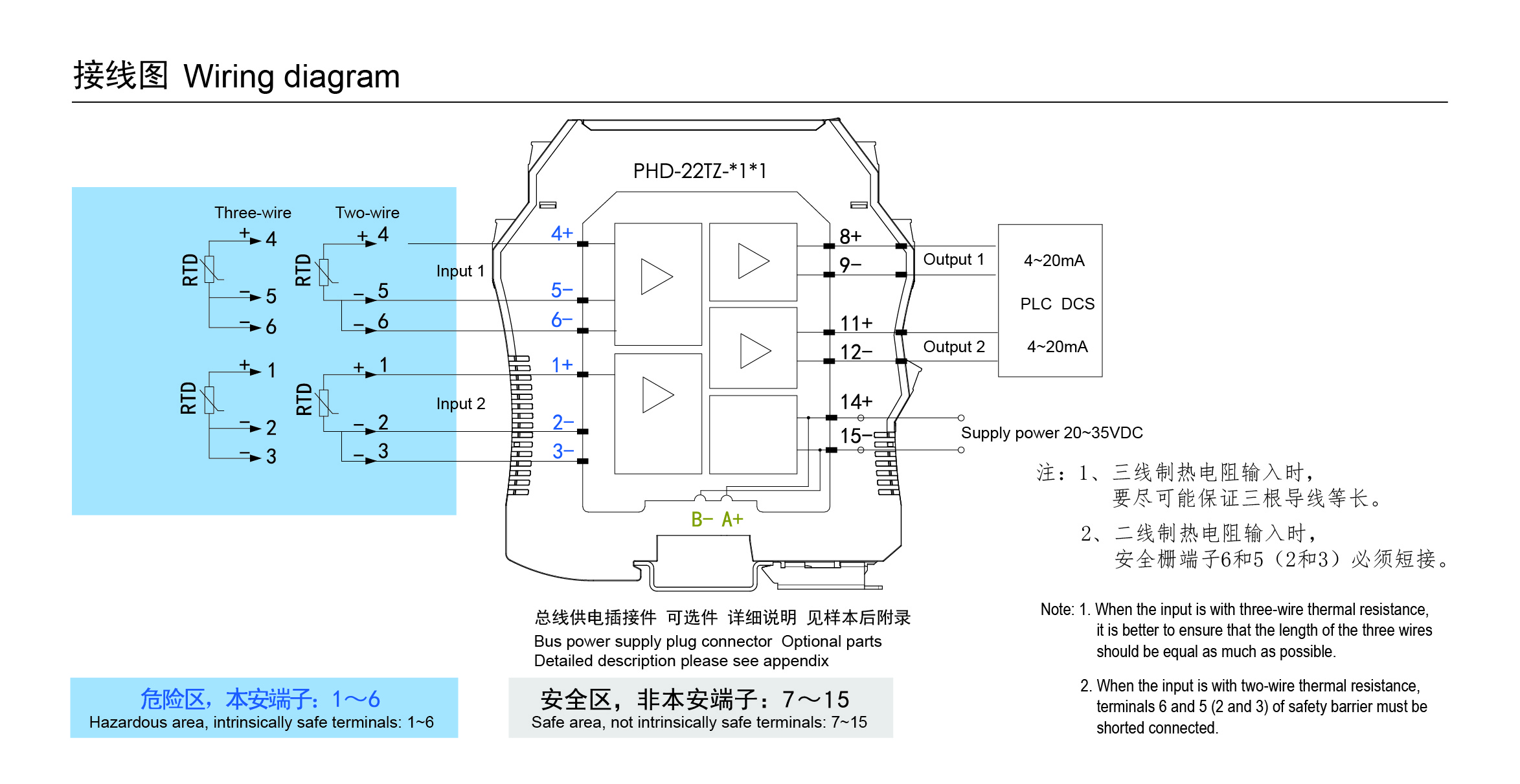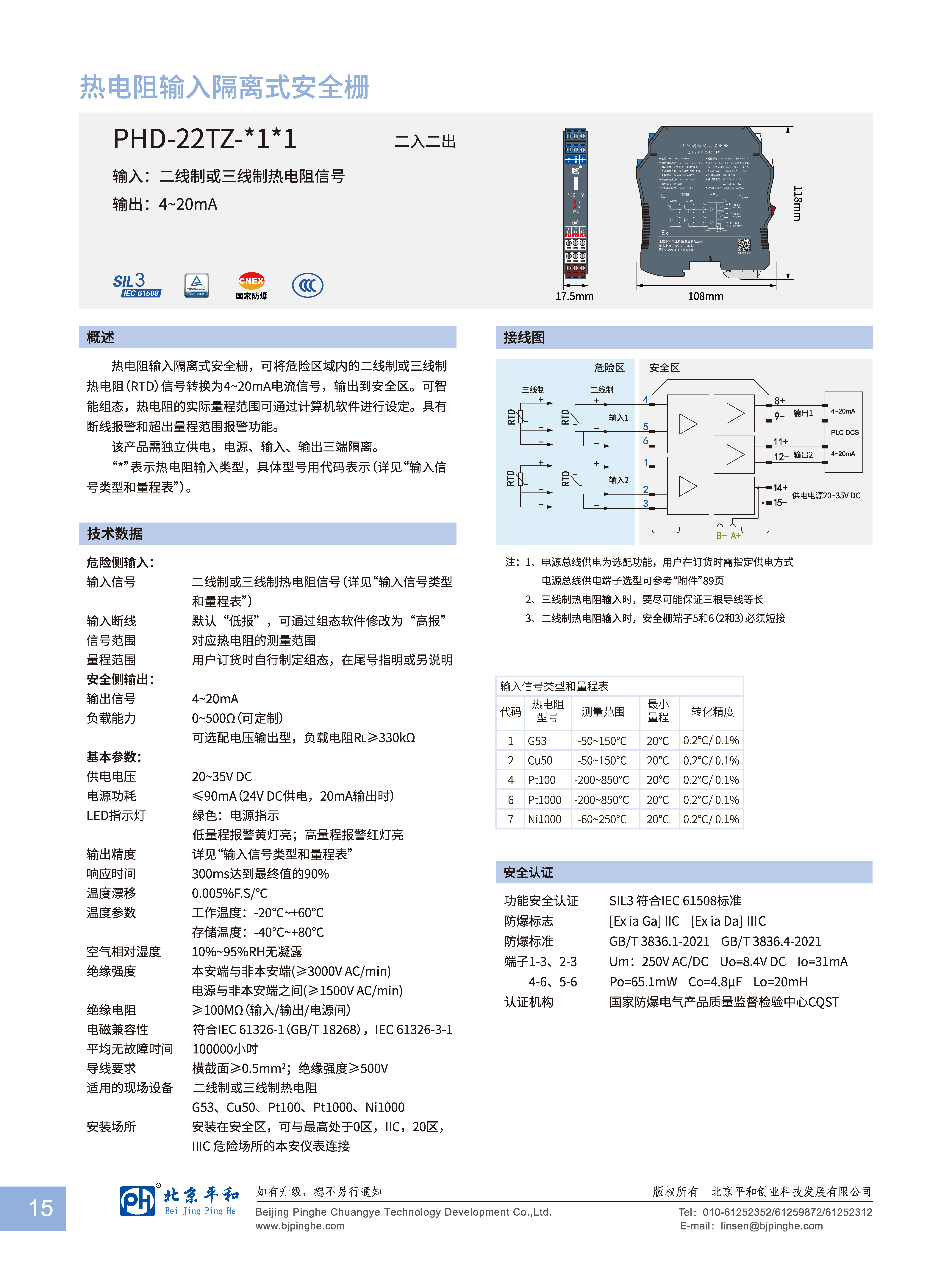 熱電阻輸入隔離式安全柵,可將危險(xiǎn)區(qū)域內(nèi)的二線制或三線制熱電阻(RTD)信號轉(zhuǎn)換為4-20mA電流信號,輸出到安全區(qū)??芍悄芙M態(tài),熱電阻的實(shí)際量程范國可通過計(jì)算機(jī)軟件進(jìn)行設(shè)定。具有斷線報(bào)警和超出量程范圍報(bào)警功能。