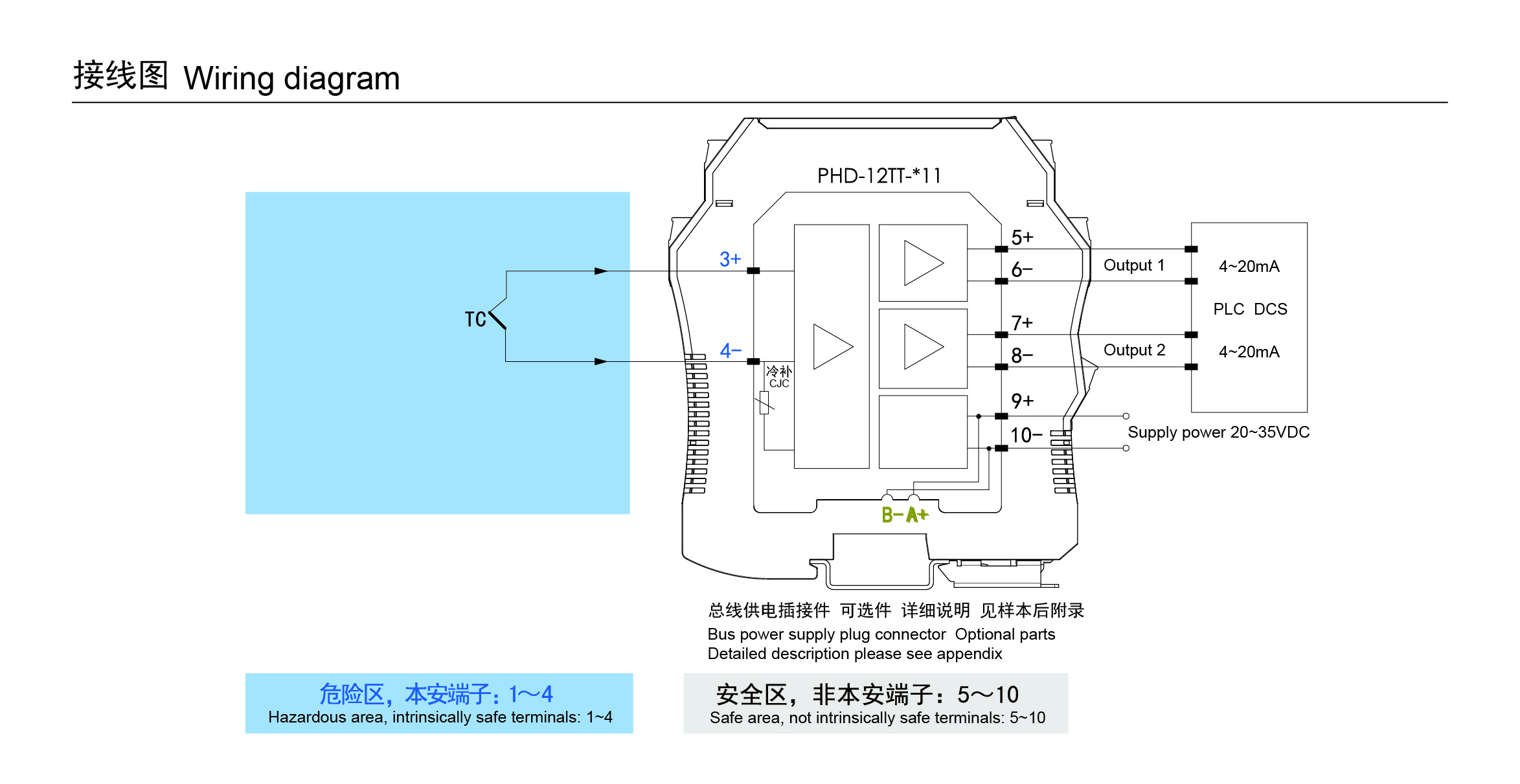 | 供電電壓 | 20-35VDC,功耗<1.8W (24VDC供電,20mA輸出時) |