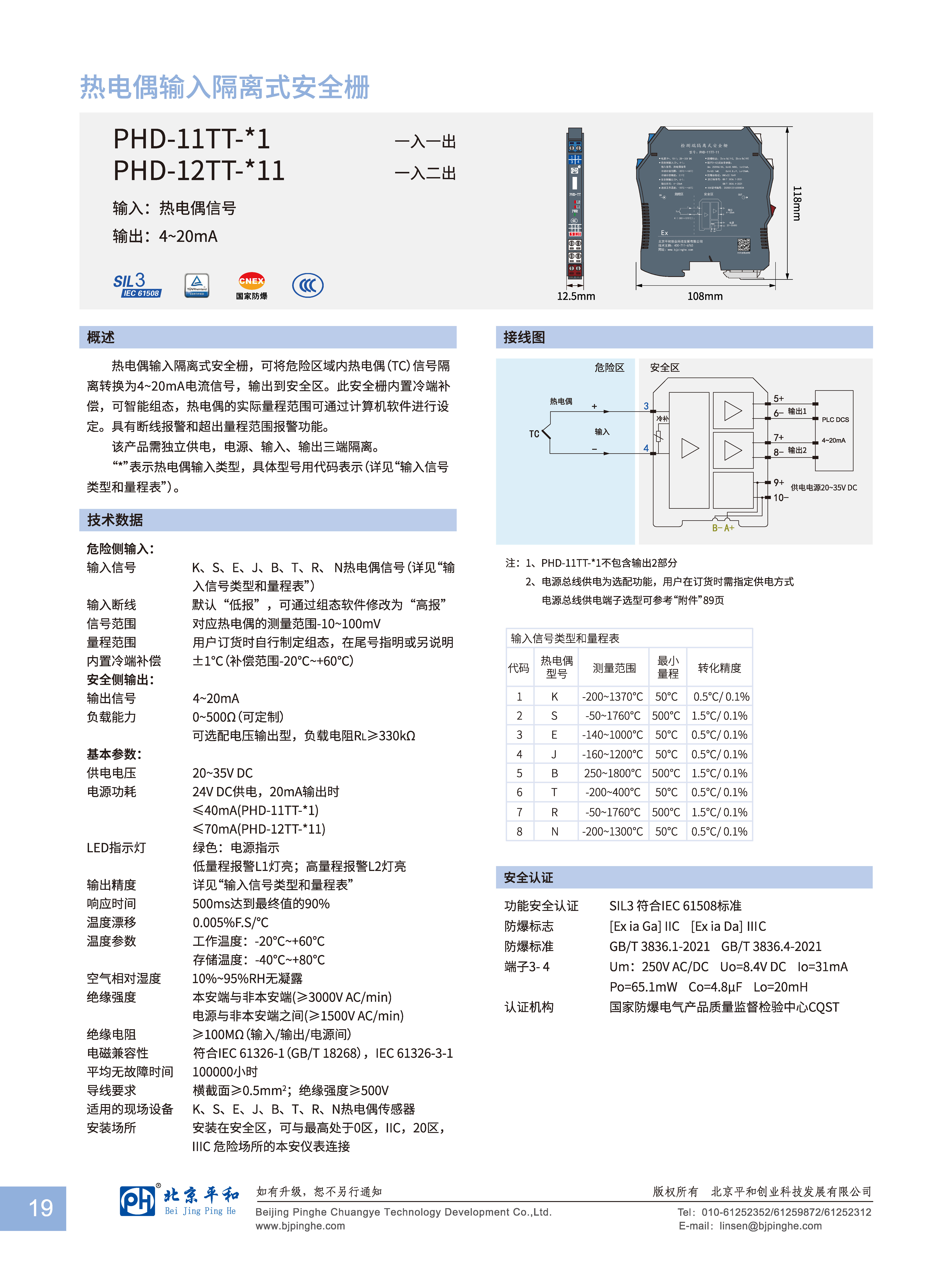 熱電偶輸入隔離式安全柵,可將危險區(qū)域內(nèi)熱電偶(TC)信號隔離轉(zhuǎn)換為4-20mA電流信號,輸出到安全區(qū)。此安全柵內(nèi)置冷端補償,可智能組態(tài),熱電偶的實際量程范圍可通過計算機軟件進行設(shè)定。具有斷線報警和超出量程范圍報警功能。