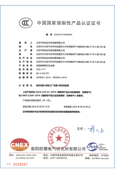 | 認(rèn)證機構(gòu) | 國家防爆電氣產(chǎn)品質(zhì)量監(jiān)督檢驗中心CQST認(rèn)證 |