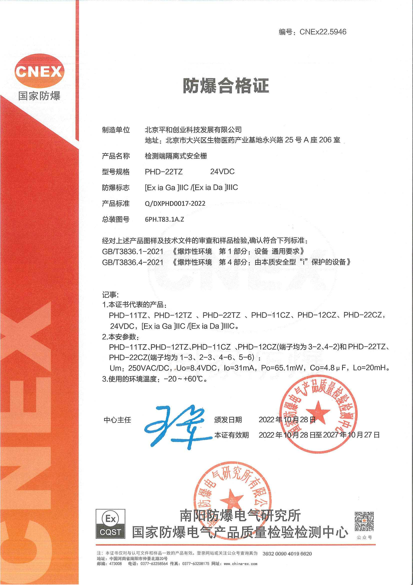 | 認證機構 | 國家防爆電氣產(chǎn)品質量監(jiān)督檢驗中心CQST認證 |