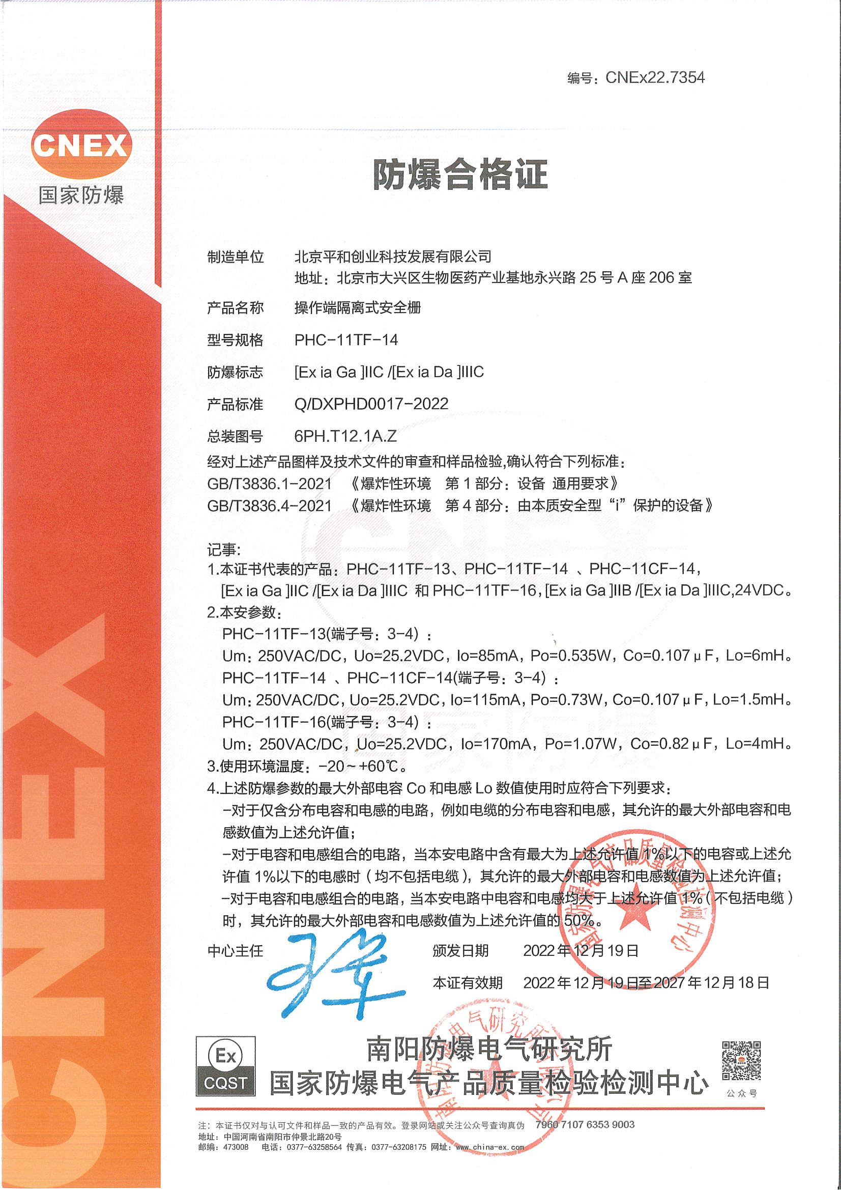| 認證機構 | 國家防爆電氣產(chǎn)品質量監(jiān)督檢驗中心CQST認證 |