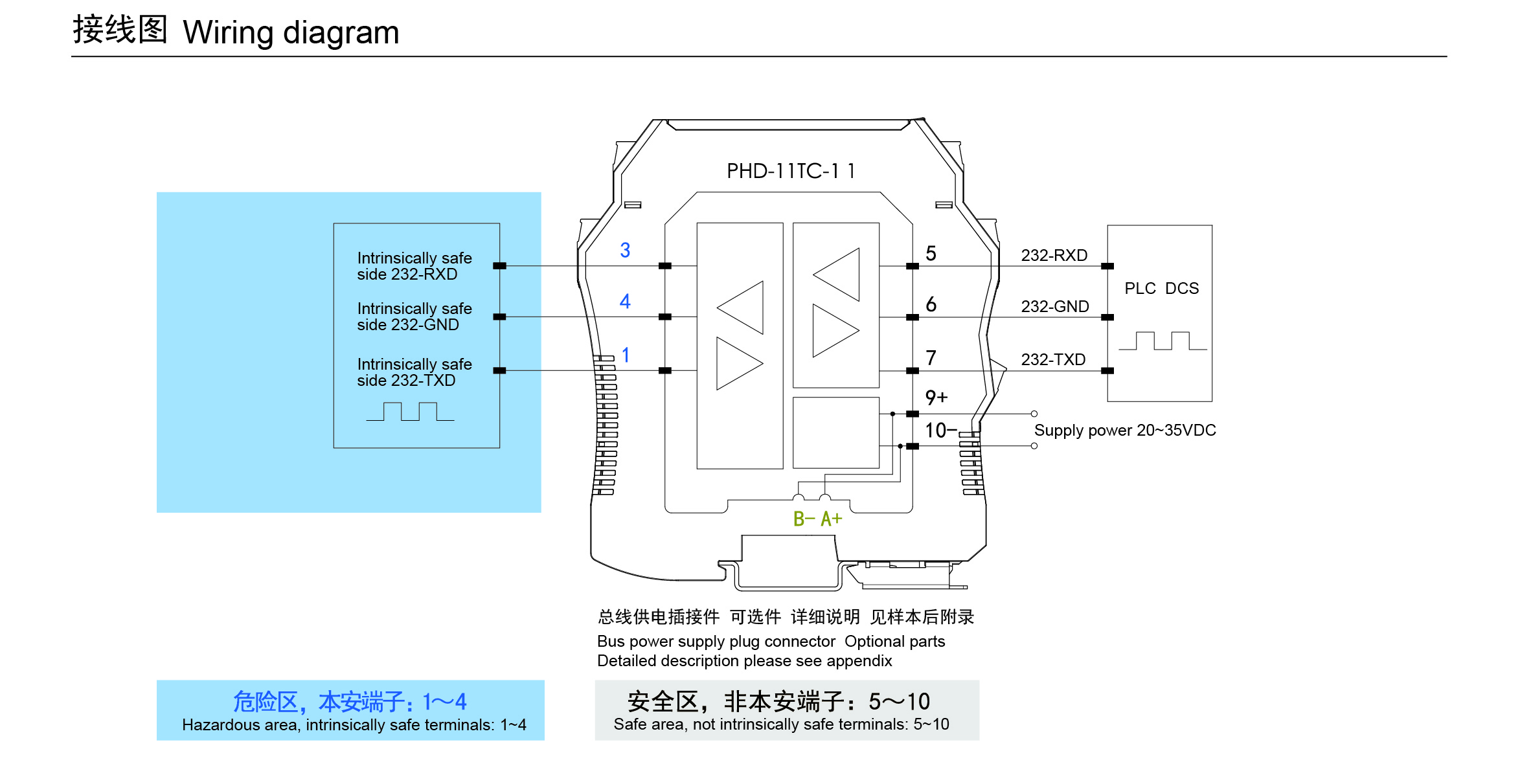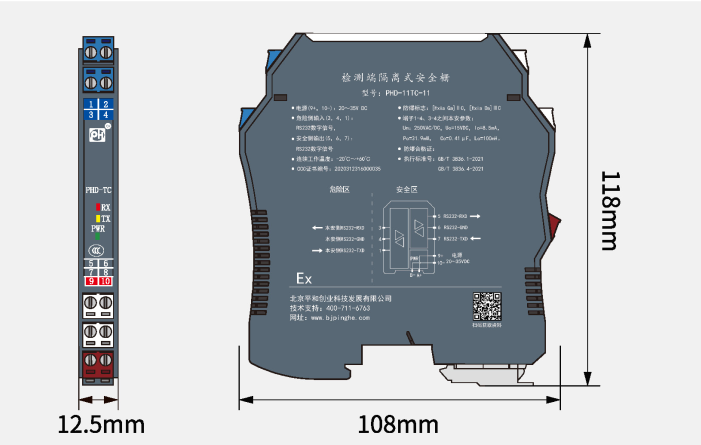 PHD-11TC-11通訊信號輸入隔離式安全柵,可實現(xiàn)RS-232數(shù)字信號在危險區(qū)和安全區(qū)的雙向通信。