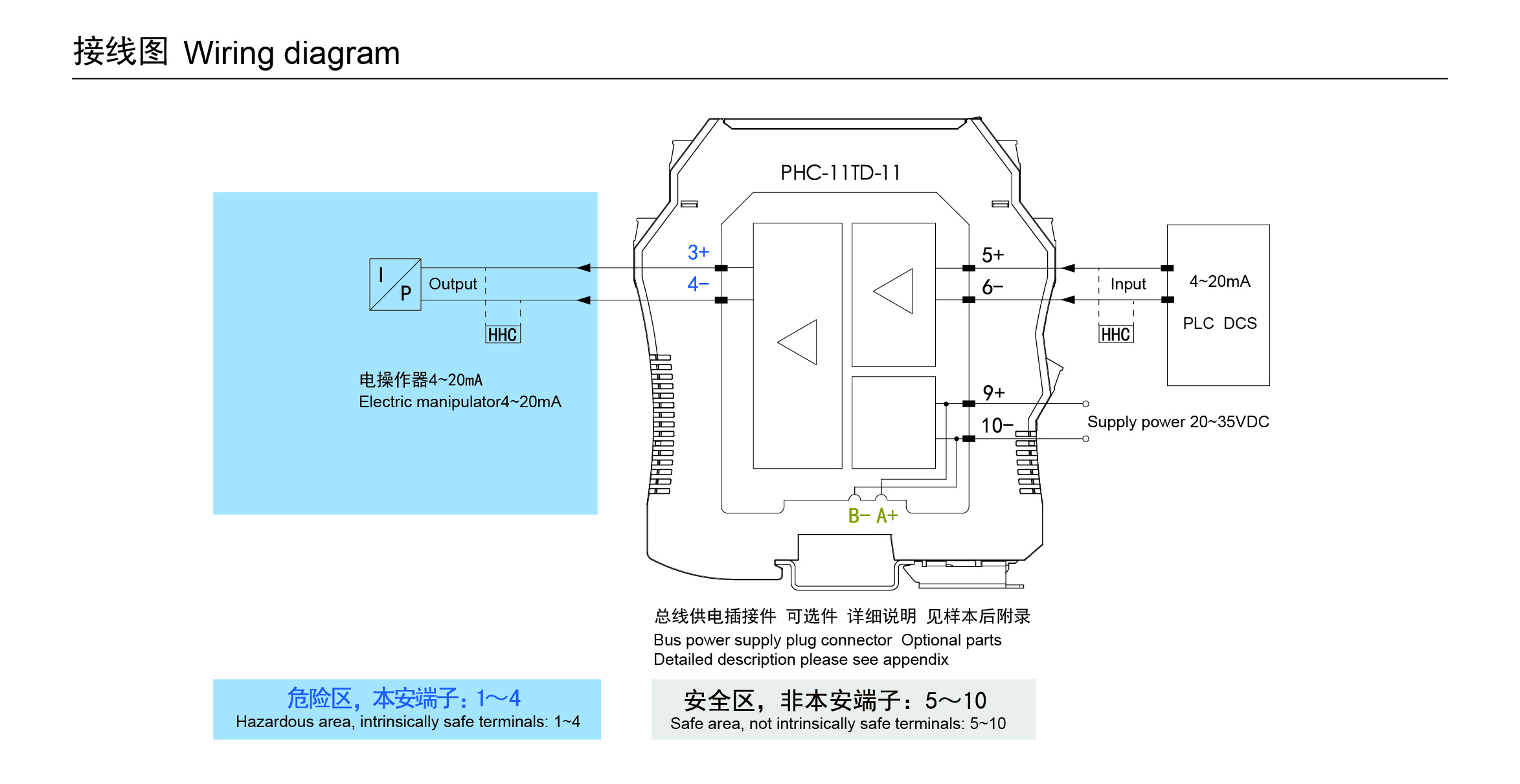 | 供電電壓 | 20~35VDC,功耗約1.2W(24VDC,輸出20mA時) |