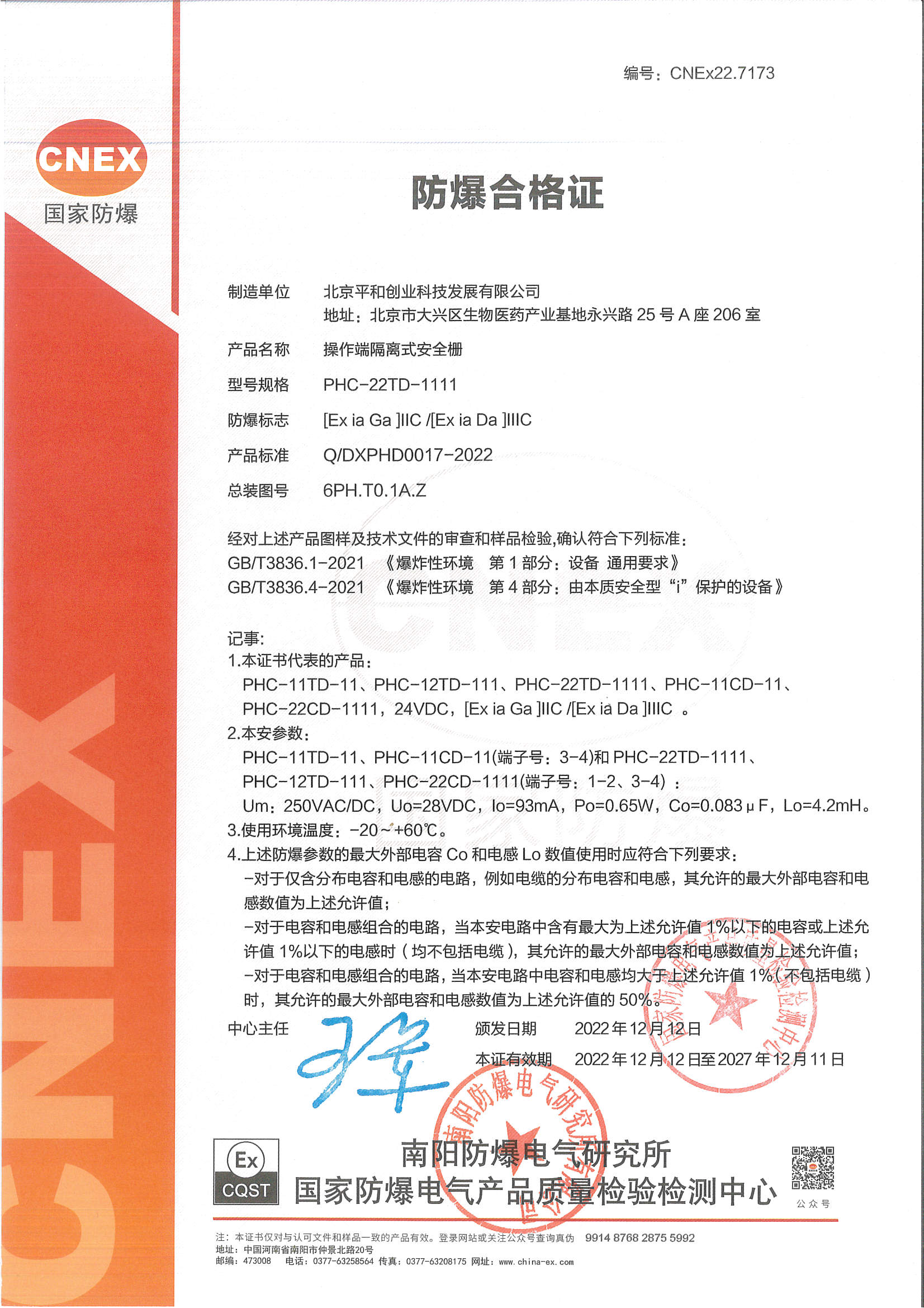 | 認證機構 | 國家防爆電氣產品質量監(jiān)督檢驗中心CQST認證 |