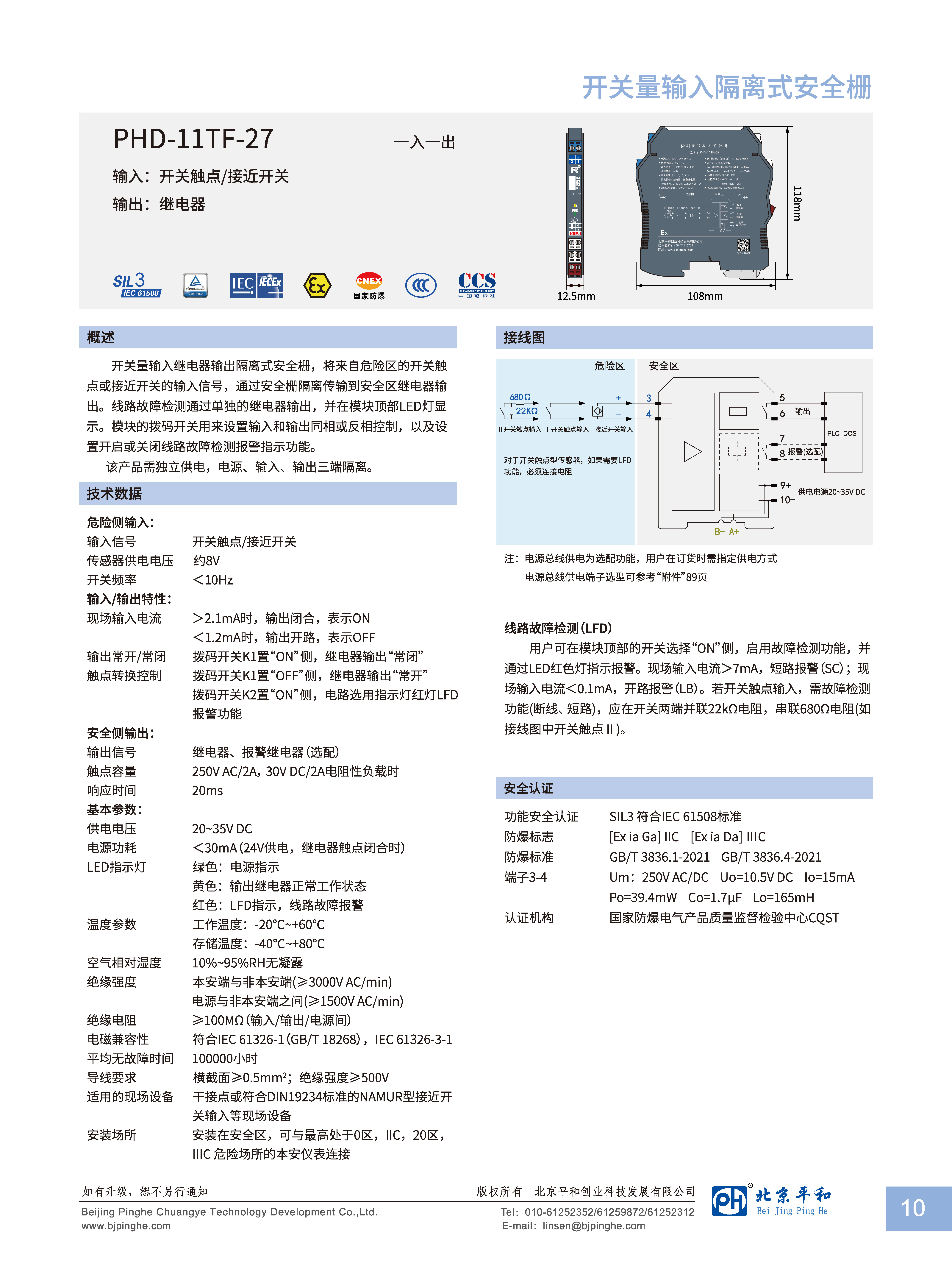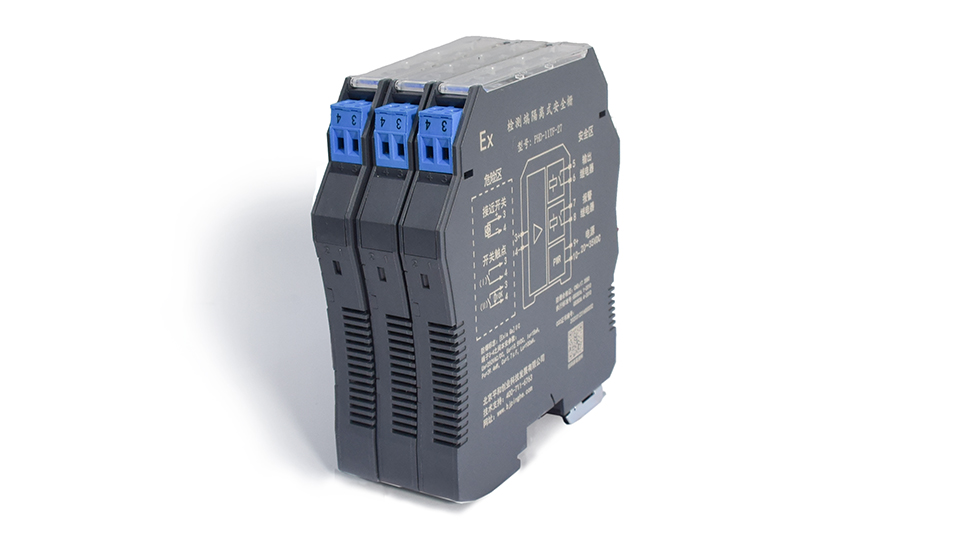 開關(guān)量輸入繼電器輸出隔離式安全柵,將來自危險區(qū)的開關(guān)觸點(diǎn)或接近開關(guān)的輸入信號,通過安全柵隔離傳輸?shù)桨踩珔^(qū)繼電器輸出。線路故障檢測通過單獨(dú)的繼電器輸出,并在模塊頂部LED燈顯示。模塊的撥碼開關(guān)用來設(shè)置輸入和輸出同相或反相控制,以及設(shè)置開啟或關(guān)閉線路故障檢測報警指示功能。
