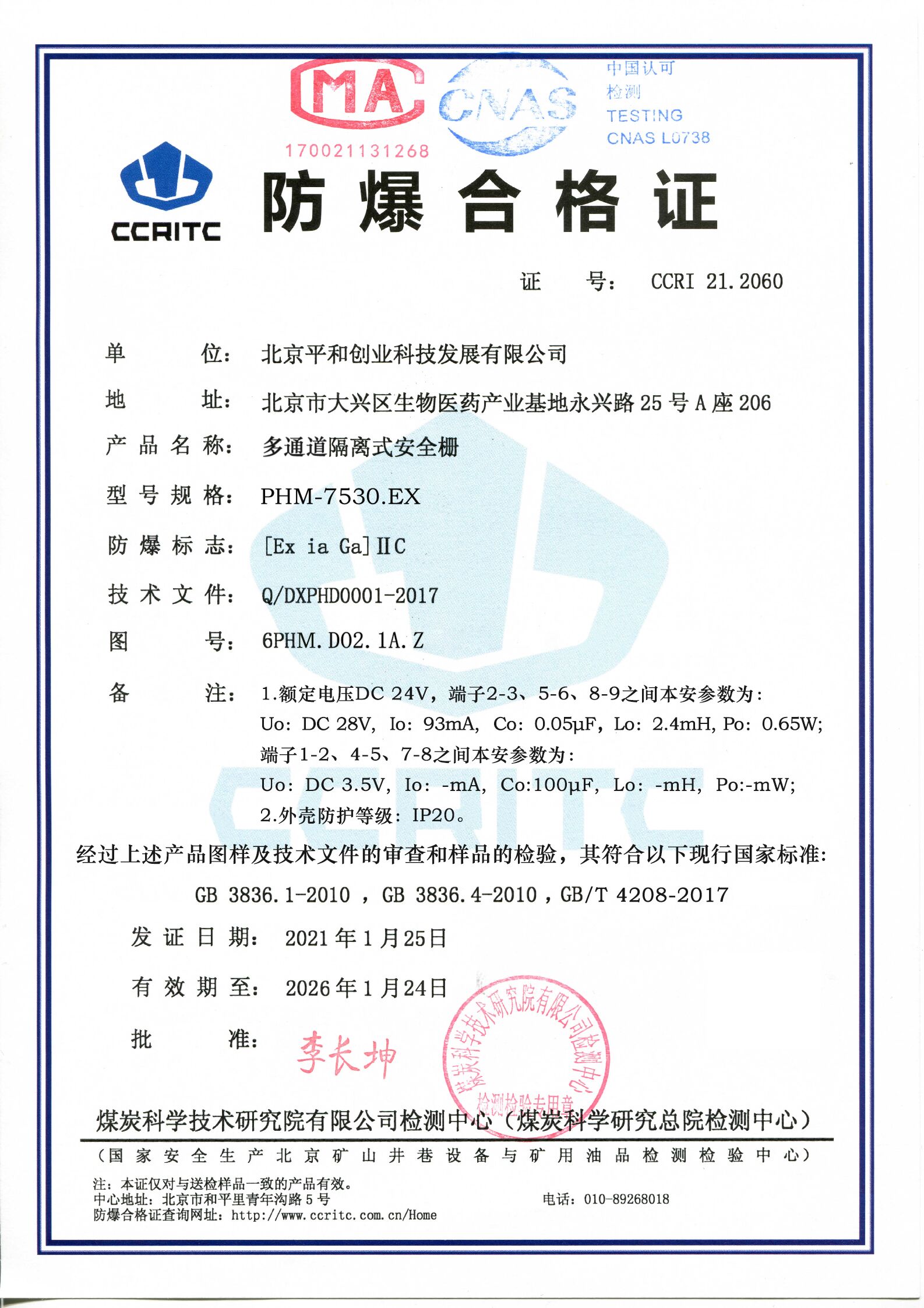 端子1-2,4-5,7-8之間:Um=250V Uo=10.5V lo=15mA Co=1.7uF Lo=100mH Po=39.4mW 端子2-3,5-6,8-9之間:Um=25 0V Uo=28V lo=93mA Co=0.05uF Lo=2.4mH Po=0.65W |