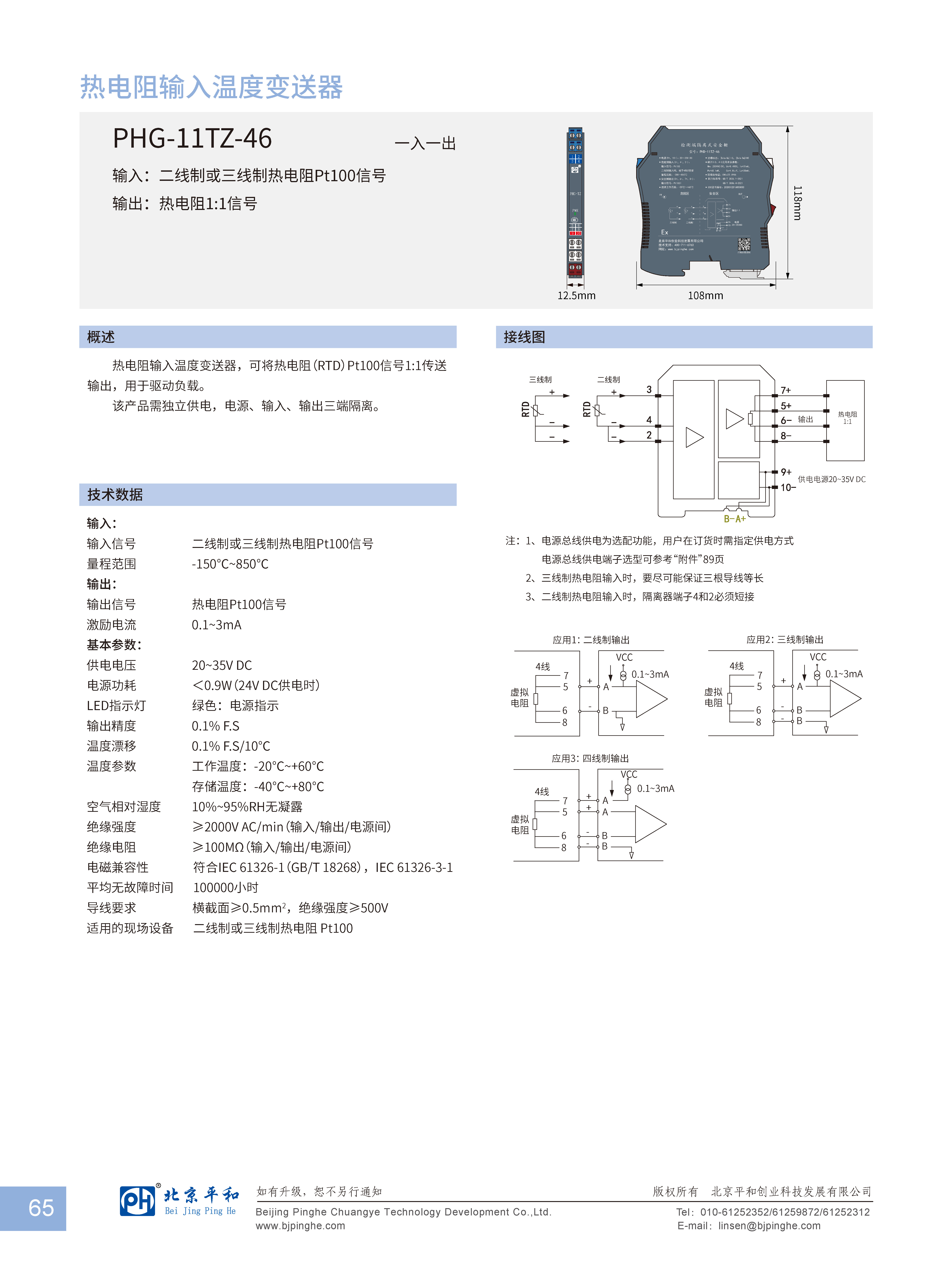 熱電阻輸入溫度變送器,可將熱電阻(RTD)Pt100信號1:1傳送送輸出,用于驅(qū)動負(fù)載。