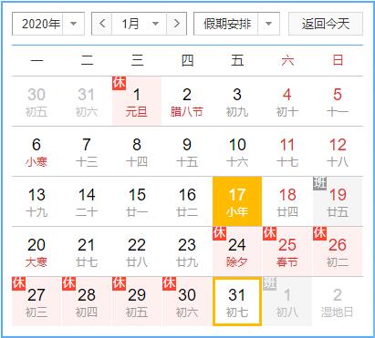 春節(jié)放假時間:1月18日——1月30日,1月31日恢復(fù)正常上班。